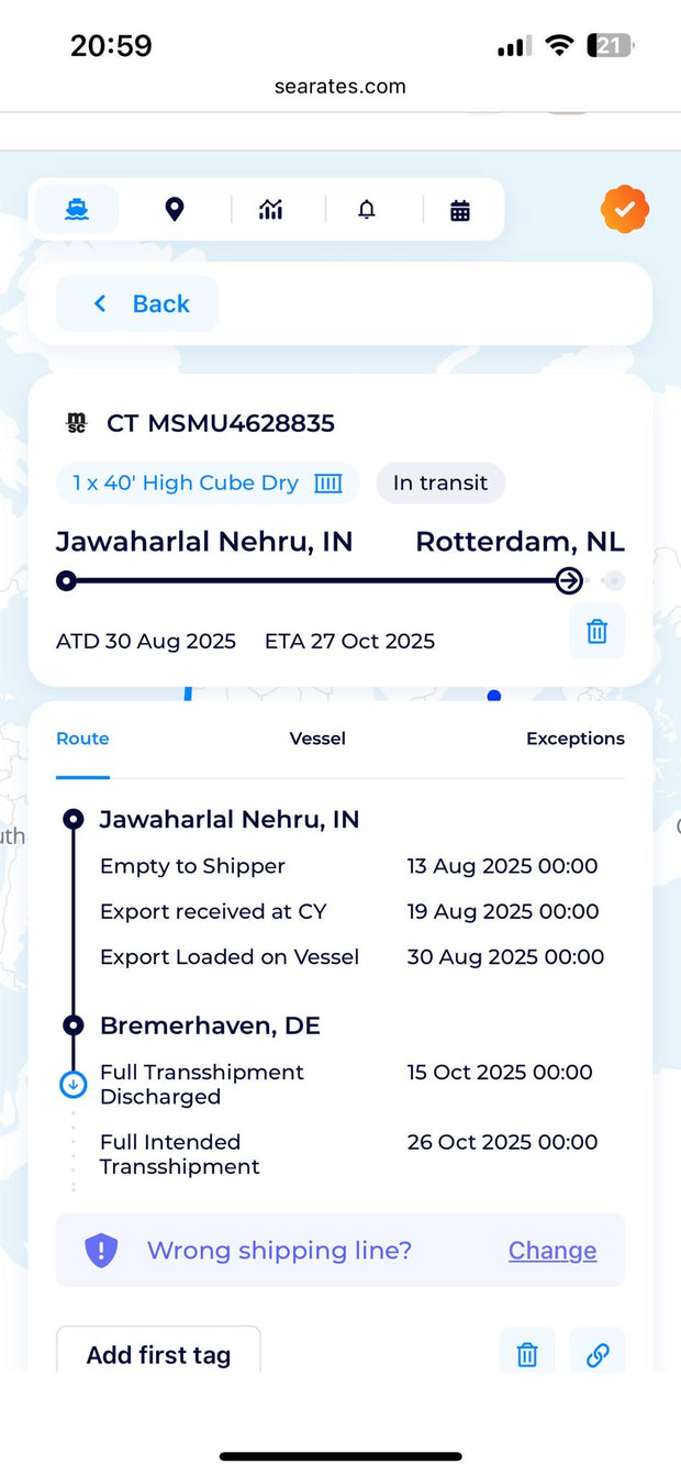 Bij deze een pagina waar alle actueele informatie staat met betrekking tot jou lopende order. Zoals je weet is er enorm veel aan de hand in de haven van Rotterdam