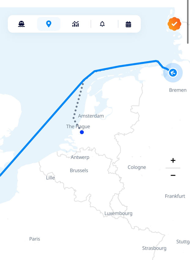 update 10-10-2025: Boot vaart door naar Bremenhaven, door stakingen geen plek in Rotterdam