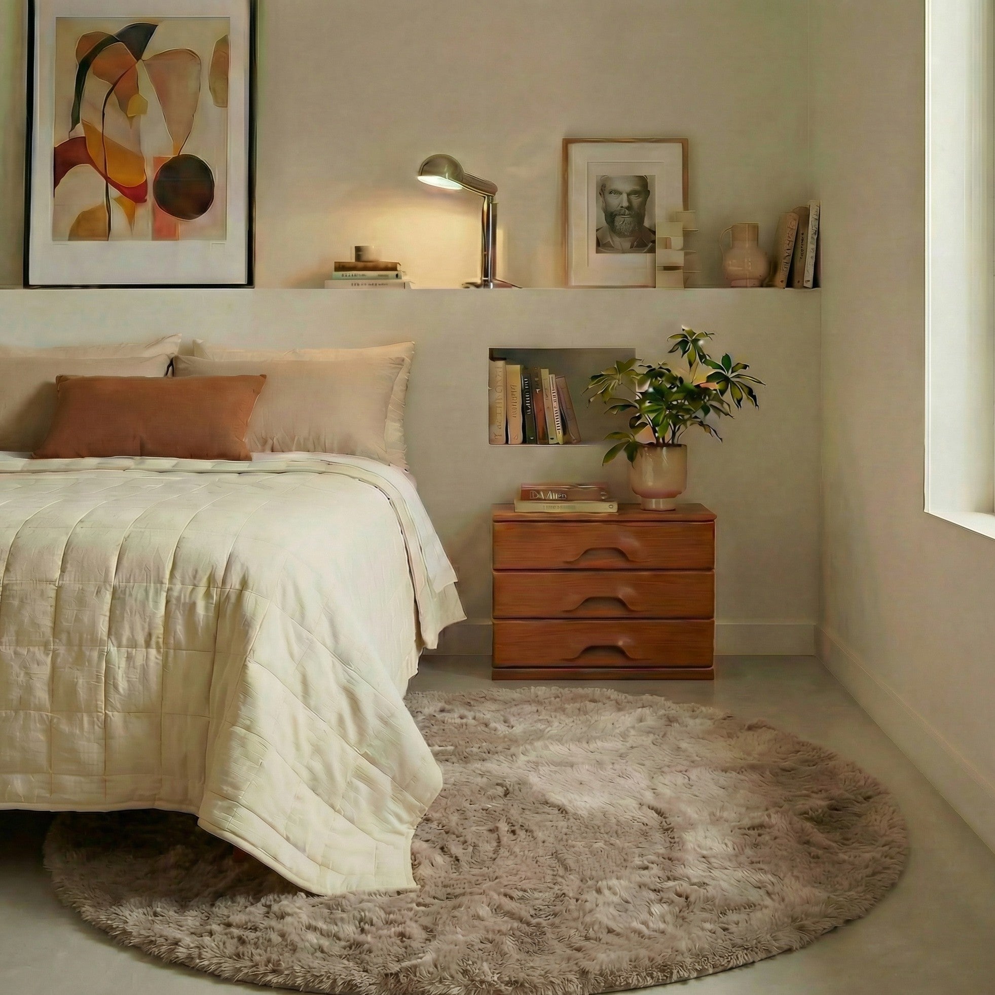 Runder Hochflorteppich, extra weich und flauschig – taupe